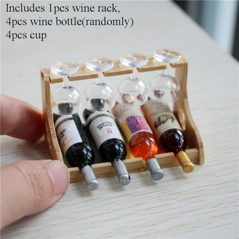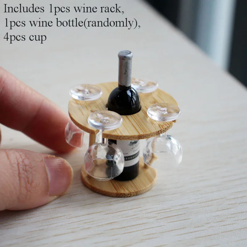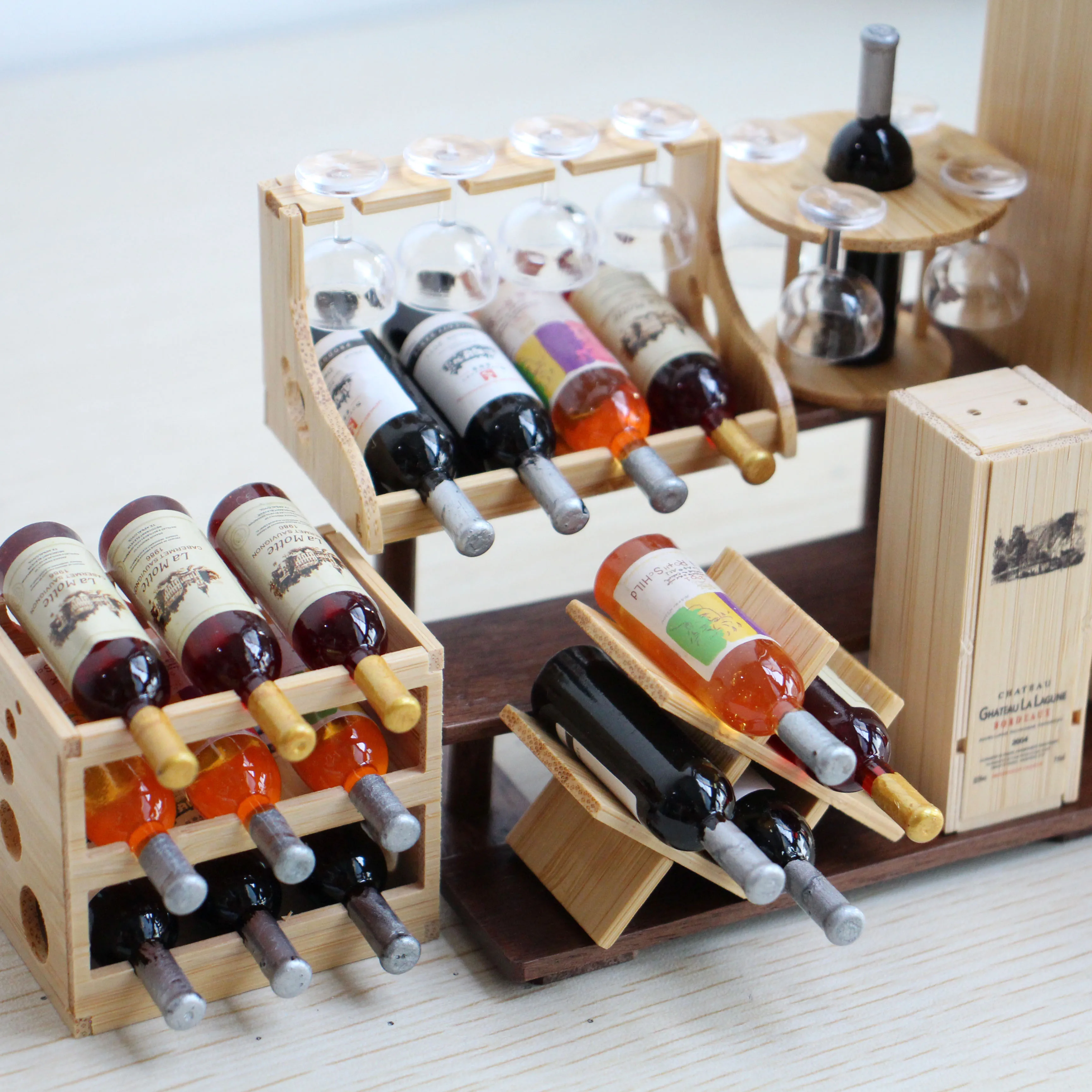 Modelo clásico de estante para copas de vino tinto para casa de muñecas en miniatura a escala 1:6