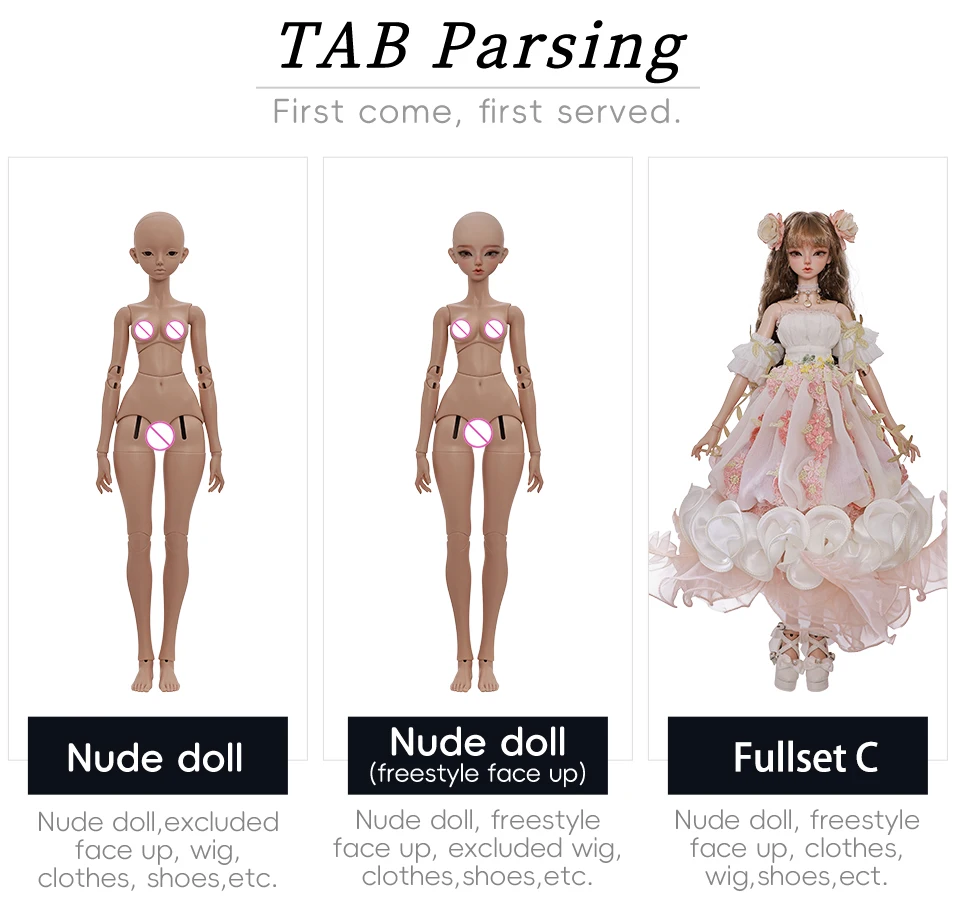 2.Muñeca desnuda + boca arriba: muñeca desnuda, estilo libre boca arriba, ropa excluida, peluca, zapatos, etc.