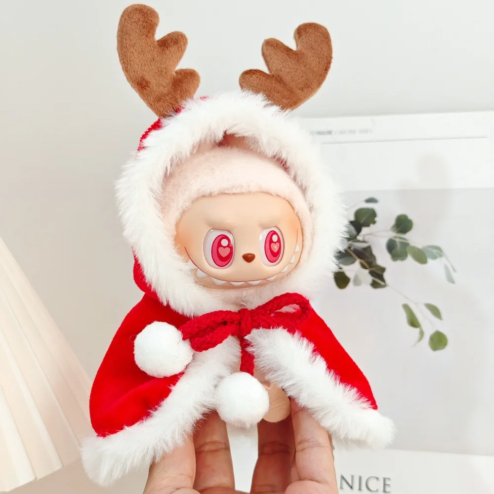 Ropa navideña para muñecas Labubu, conjunto de gorro y suéter para Mini Idol V1 V2 V3, traje de peluche cálido para vacaciones, regalo de Papá Noel para coleccionistas